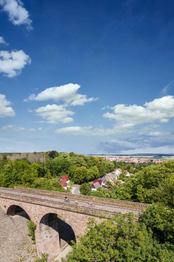 Dingelstädt – Stadt an der Unstrutquelle Bereits im 9. Jahrhundert wurde Dingelstädt erwähnt und ist damit eine der ältesten verbürgten Siedlungen des Eichsfeldes. Seit dieser Zeit hat es eine zentrale Funktion in seiner Region, war Gerichtsplatz, Rastort für Reisende, Marktflecken und Poststation. Seit dem 1. Januar 2019 haben sich die 5 Gemeinden Dingelstädt, Helmsdorf, Kefferhausen, Kreuzebra und Silberhausen zu der neuen Stadt Dingelstädt zusammengeschlossen. Die neue Landgemeinde hat eine Fläche von 59,4 km² und 7.041 Einwohner. Ein Spaziergang durch die Stadt führt an manchen Zeugnissen der Geschichte vorbei: Dingelstädts ältestes Gebäude ist die Große Mühle von 1591 mit ihrem mächtigen Steinportal. Auch das Rathaus im Stil der niedersächsischen Renaissance und die neugotische Kirche St. Gertrudis aus dem 19. Jahrhundert locken mit ihren ansprechenden Fassaden die Blicke auf sich. Einen Besuch wert ist auch der prächtigste Bau des vor rund 100 Jahren gebauten heutigen staatlichen Gymnasiums. Dingelstädts Bürger sind sich ihrer Traditionen bewusst und pflegen sie liebevoll: Jedes Jahr am Ostermontag machen sich Vorschulkinder mit Steckenpferden auf, um die Wallfahrtskirche Maria im Busch zu umrunden. Dieser Ritt hat seine Wurzeln in den Zeiten des Dreißigjährigen Kriegs. Eine "Wallfahrt“ führt hinauf auf den Kerbschen Berg, der von einem ehemaligen Franziskanerkloster gekrönt wird. Heute befindet sich dort ein Familienzentrum. Die prächtigsten Bäume, der Franziskanerfriedhof sowie der Kreuzweg aus dem 18. Jahrhundert und nicht zuletzt die Tuffsteingrotten machen das Areal für viele Besucher zu einem der unvergesslichen Orte des gesamten Eichsfeldes. Ein besonderes Plus bietet die Stadt Dingelstädt mit ihrer Anbindung an umliegende touristische Radwege. Am sogenannten „Dingelstädter Radwegekreuz“ können Sie auf gut beschilderten Radwegen nach Lust und Laune in alle Himmelsrichtungen hin- und auch weiterfahren. In Dingelstädt verbinden sich, neben dem Kanonenbahnradweg, gleich drei weitere Radwege: Der Unstrutradweg, der Unstrut-Hahle-Radweg, der bis nach Niedersachsen führt und der Unstrut-Verbindungsradweg, der in Heiligenstadt an den Leine-Heide-Radweg anbindet. Über den beliebten Kanonenbahnradweg gelangt man ins Südeichsfeld mit zwei weiteren interessanten Anbindungen: Zum einen überschreitet man gen Süden fahrend die Landesgrenze Thüringen-Hessen und kann in Frieda dann auf dem Werratalradweg weiterradeln. Alternativ kommt man über Geismar nach Heilbad Heiligenstadt zum Südeichsfeldradweg. Die zahlreichen Möglichkeiten für kleinere und größere Touren ziehen jährlich viele Radfreunde in die Region.