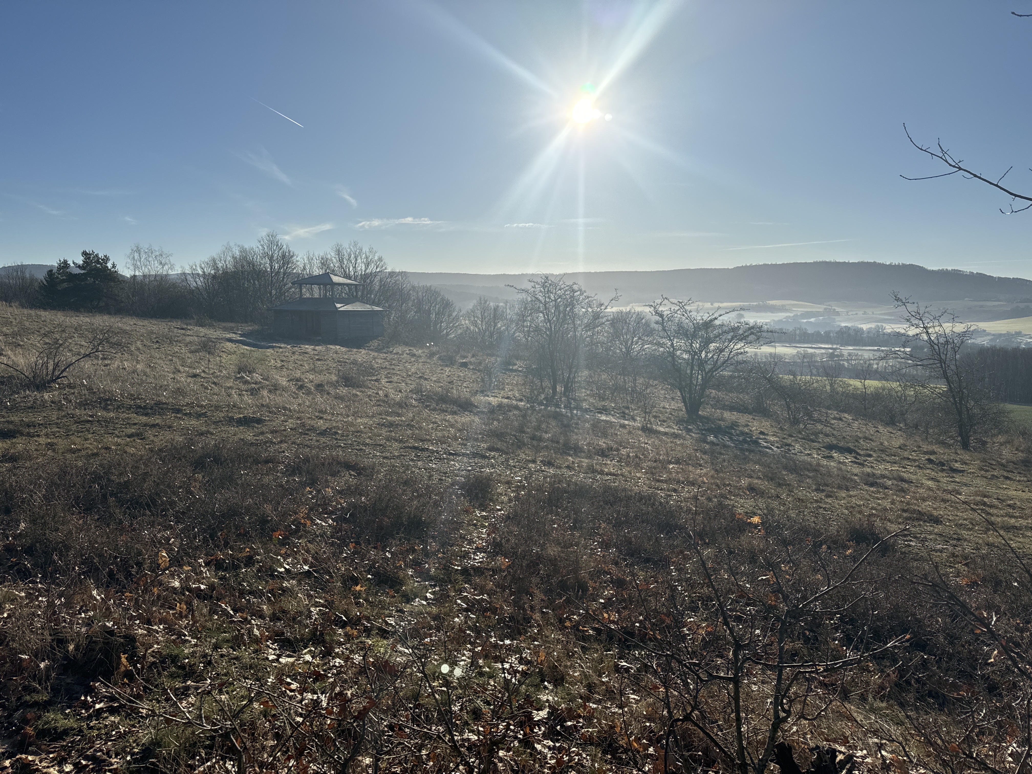 Vom Hotel Kronprinz aus führt Sie Ihre Wandertour entlang des „Grünen Bandes“. Über den ehemaligen Kolonnenweg mit Erdbunker laufen Sie in Richtung Sielmann-Höhenweg. Hier gibt es immer wieder Ausblicke auf das nahe Ohmgebirge und den eindrucksvollen Sonnenstein.