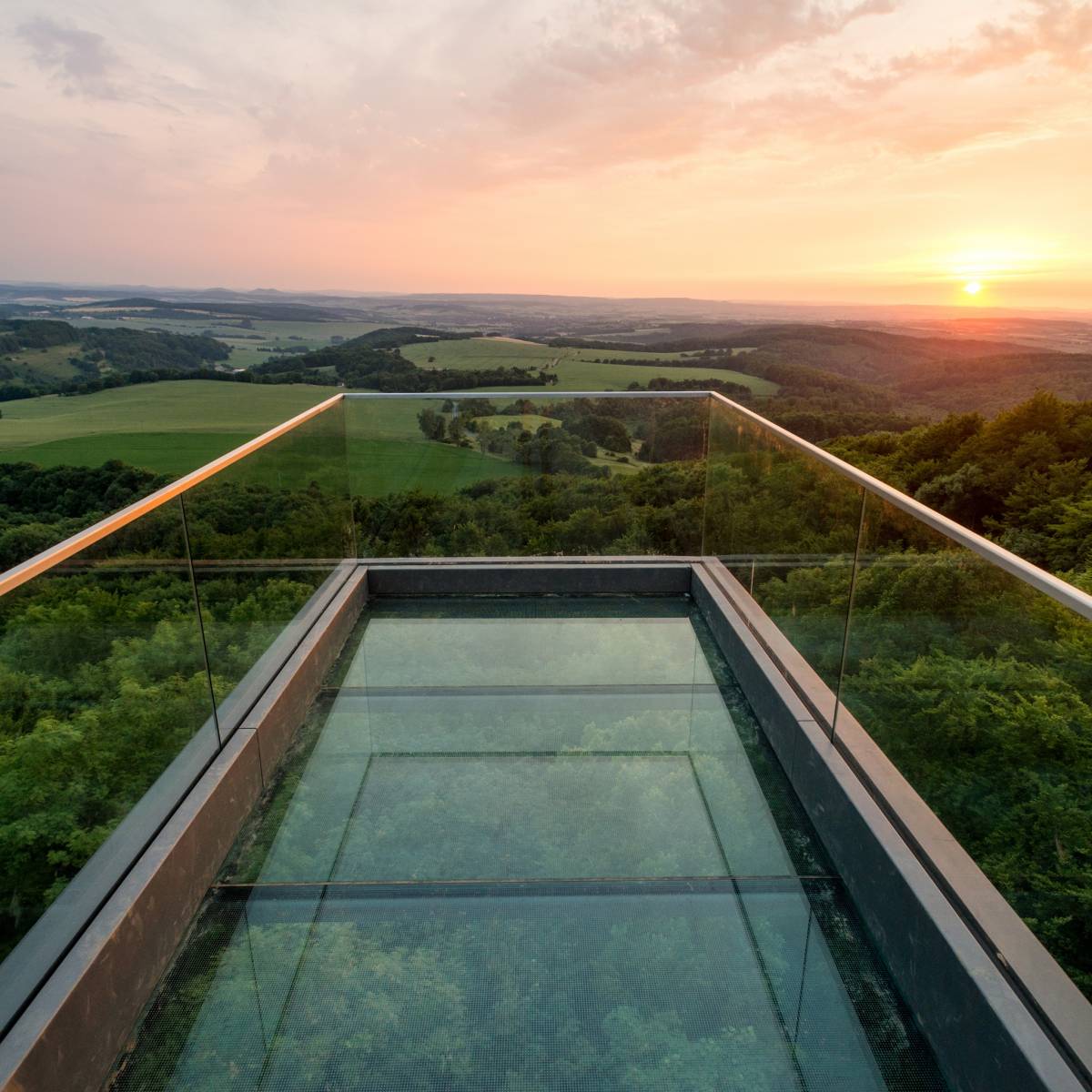 Schließlich erreichen Sie den Zielpunkt und somit einen ganz besonderen Ort Ihrer Wanderung: den Skywalk auf dem Sonnenstein! Genießen Sie diesen grenzenlosen Ausblick!