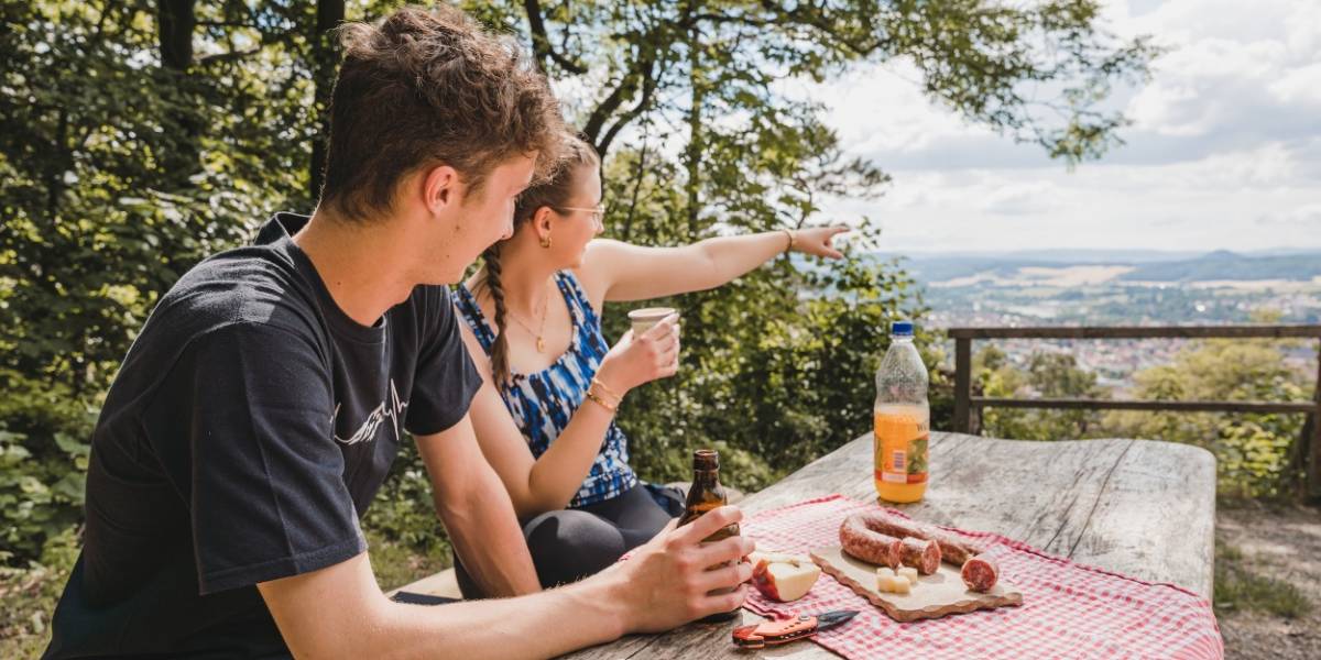 Ihre anspruchsvolle Wandertour beginnt in der Ortsmitte von Beberstedt. Am Ortsausgang erhaschen Sie einen Blick auf den Inselsberg, bevor Sie in den Landgraben einsteigen.