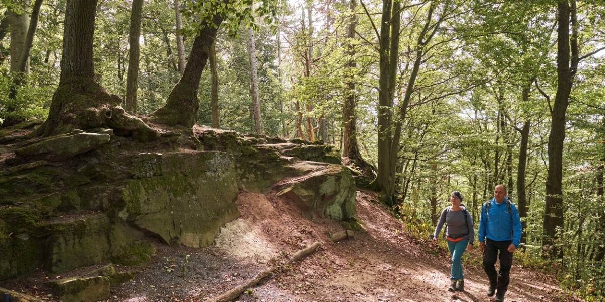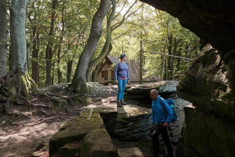 Anschließend wandern Sie weiter zur sagenumwobenen Teufelskanzel. Hier hat bereits der Teufel selbst eine Rast ein- und diesen Felsbrocken abgelegt. Sie genießen den Ausblick ins Werratal und hausgemachte Spezialitäten im urigen Waldgasthof Teufelskanzel.